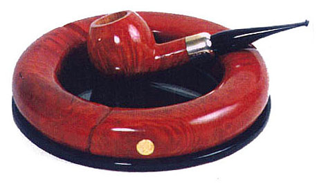 This beautiful ashtray is crafted from solid briar, and sits atop an accent base of black plexiglass. Good for cigar, pipe or cigarettes.