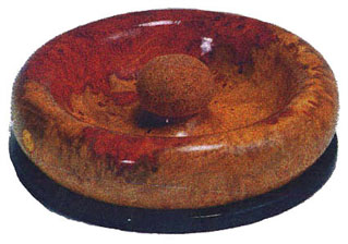 This beautiful pipe ashtray is crafted from solid amboyna burl, and sits atop an accent base of black plexiglass. The cork knocker in the center is a safe place to tap out the dottle at the bottom of the bowl.