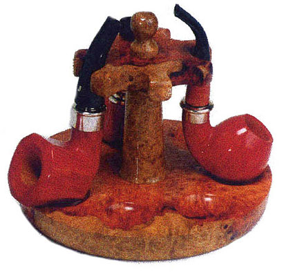 This stand holds seven (7) pipes and is made of solid amboyna burl, one of the most beautiful of exotic woods.