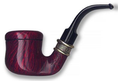 Shown in the Ruby Smooth finish. Unique micro fusion silver band with interlocking triangles. Pipe is packaged in a special leather "box". Limited series of 333 pieces.