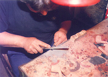 A Ser Jacopo Factory Tour Massimo uses rasps and files to shape the handmade stems for which Ser Jacopo is rightfully famous. Photo ref: FT1005 Previous Photo Next Photo Return to: Ser Jacopo Pipes Factory Tour Marble Arch Home