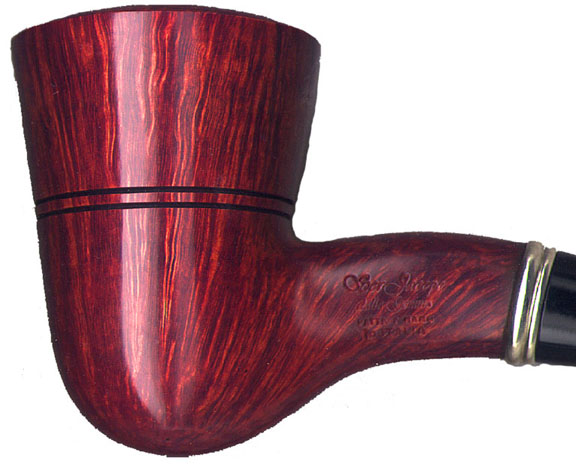 The rich Walnut finish used on Ser Jacopo pipes brings forth the depth and quantity of grain, which are the hallmarks of the Extra Quality Plateaux briar, which they use exclusively. Giancarlo and Paolo travel to the briar mills in Italy several times a year to hand pick the blocks which will bear their company's name. Pipes of this quality are often in short supply. |