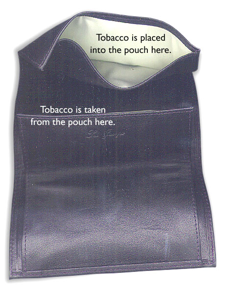 back side of the pouch. Tobacco placed into the sleeve empties