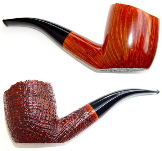 Shelby-Quaint Maxima Maxima. Half smooth straight grain and half sandblast straight grain pipe. One of a handful such pipes Ser Jacopo has made and this one will sit. Very strong grain.