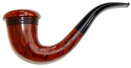 L1 Walnut Smooth Maxima Kalabash. This beautiful and extremely well grained Kalabash has a half inch rustic carved band circumnavigating the outside of the bowl This is the first time we've seen this accent.