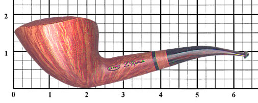 A forward swept and highly stylized pipe with a faceted top, a brindle stem and super grain.